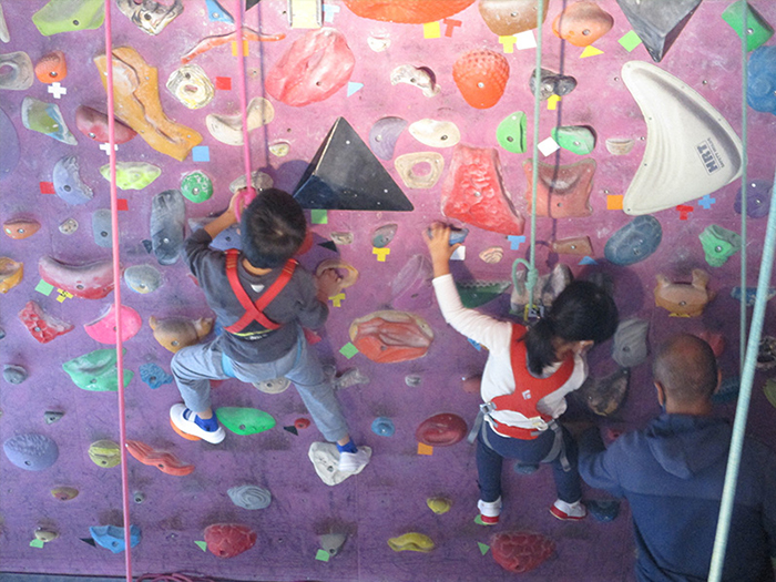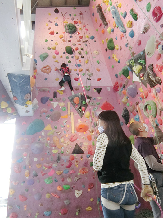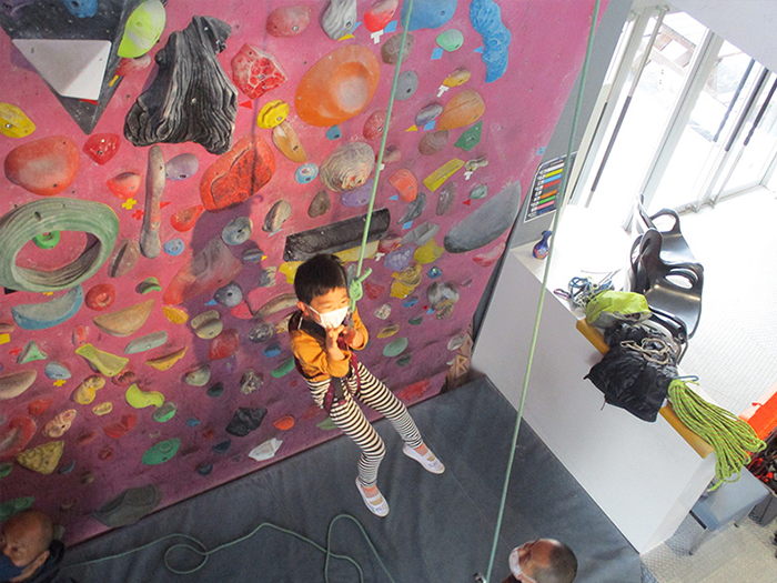 今月はハーネスを付けてトップロープクライミングに挑戦しました。