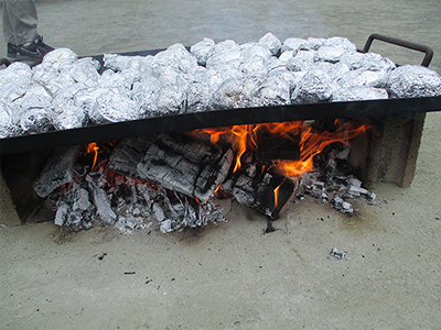 年長さんが紙、ホイルを巻いてくれたお芋を鉄板の上で焼きました。