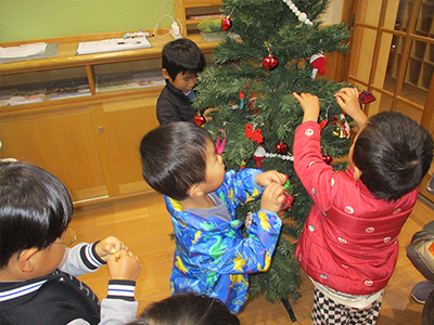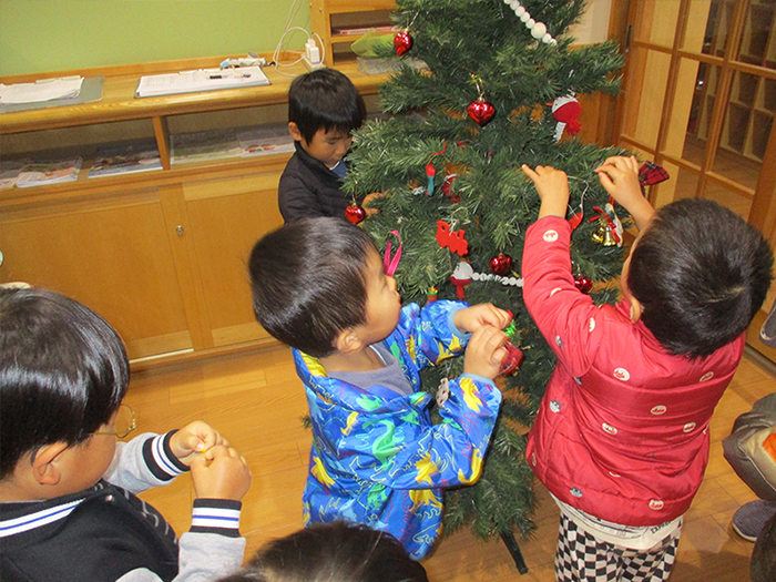 12月に入り、クリスマスの雰囲気が出てきました。みんなでツリーの飾りつけを行いました。