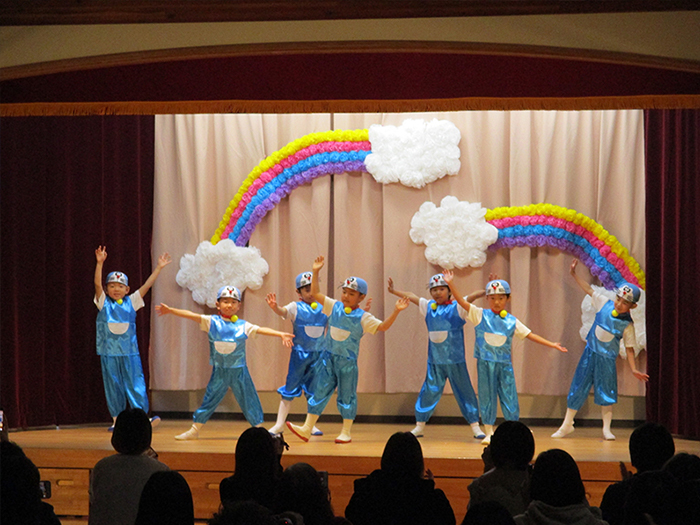 5歳児ゆうぎです。男の子は2曲、ドラえもんの曲を踊りました。 。