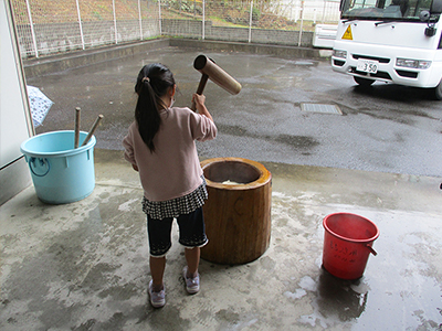 5歳児クラスがもちつきのお手伝いをしてくれました。