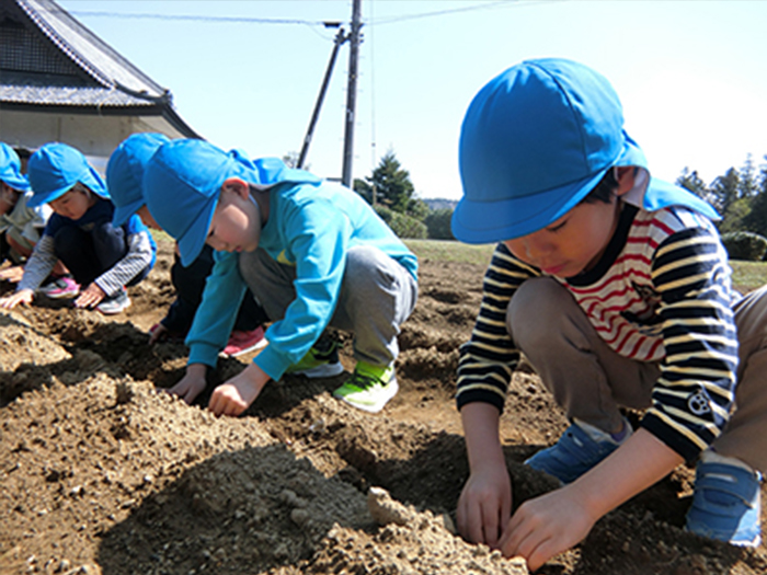 保育園の畑もピカピカの年長さんがじゃがいもを植えてくれました。