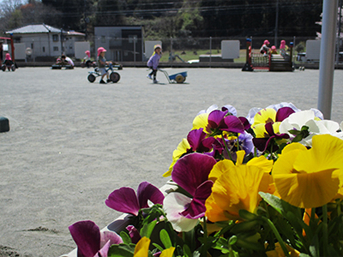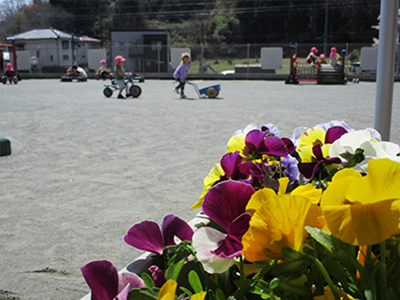 プランターに植えたパンジーも園庭であそぶ子ども達を見守ってくれています。