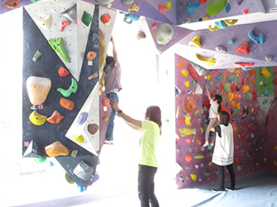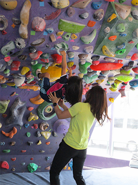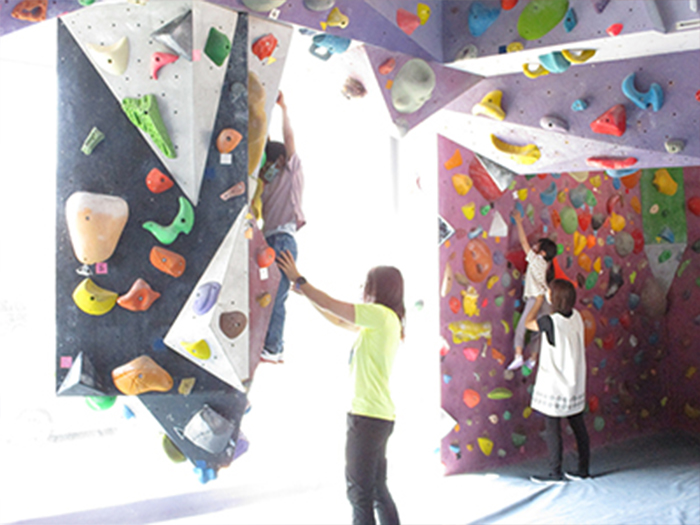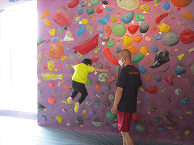 いろいろな壁を登っていきます。怖がっていた子も次々に自分の順番がくるのを待ち 挑戦していました。