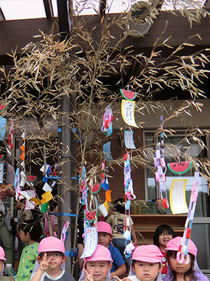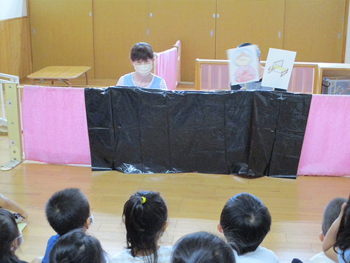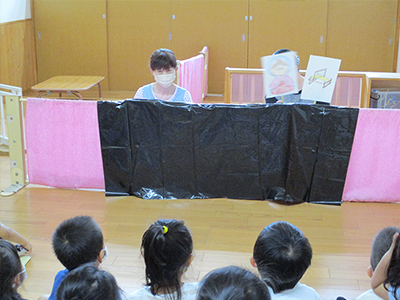 七夕当日は、先生が、織姫様、彦星様のお話しをペープサートで聞かせてくれました。
