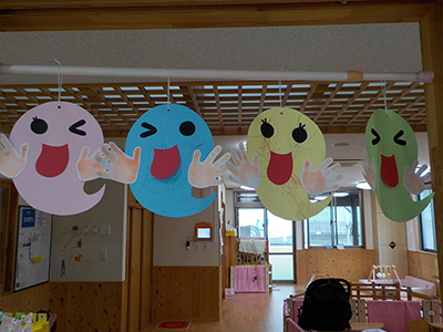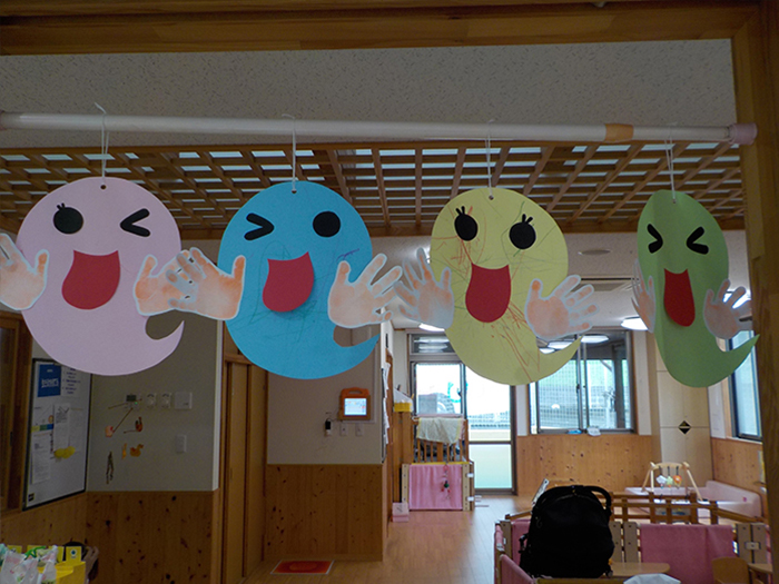 0歳児の手形のお化けも夏まつりを彩ってくれています。