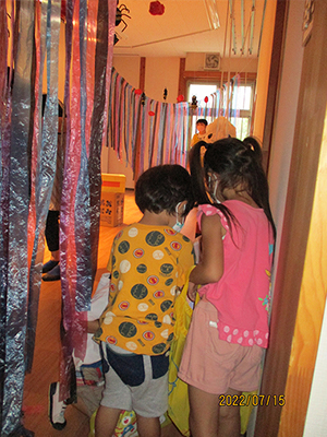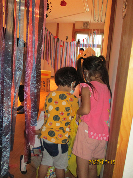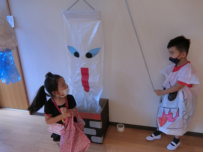 箱の中からお化けが出てきました。キャー!と言いながらみんな笑顔でした。 盛りだくさんの一日でみんな楽しみました。