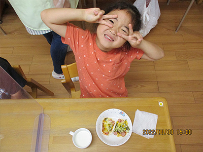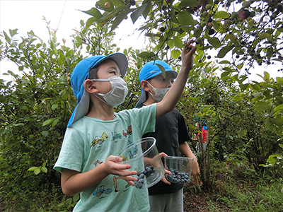 お楽しみ会のこの日はブルーベリー摘みをしたり、ピザ作りをしたり盛りだくさんの一日でした。