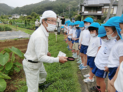 8月31日年長児が大根の種まきをしました。小さくて赤い種が大きくて真っ白い大根になるなんて・・・。