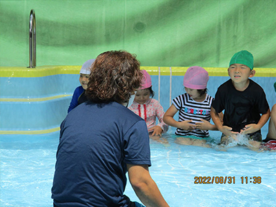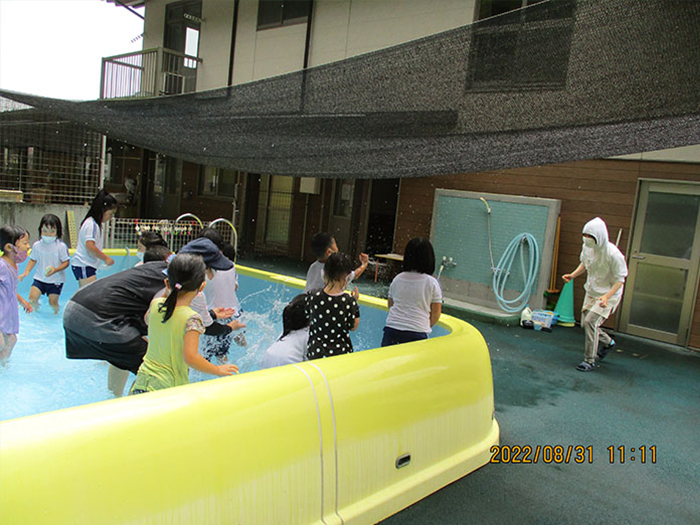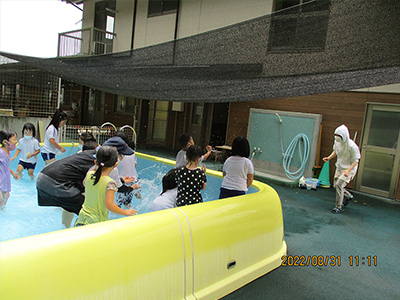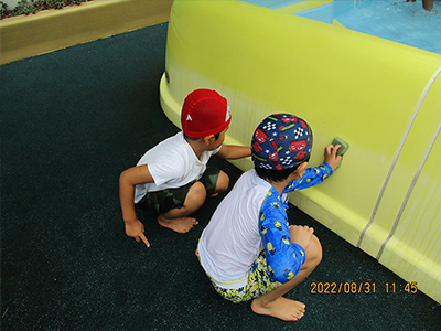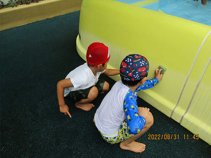 事故なくプールを終えることができ、感謝を込めて年長児が最後に掃除をしてくれました。