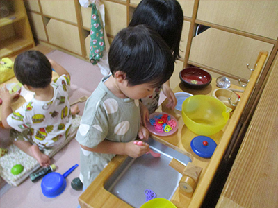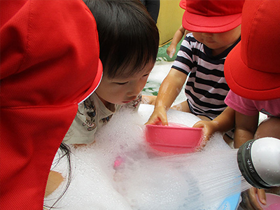 あわぶくぶく・・・。何を洗っているのかな?みんな楽しそうです。