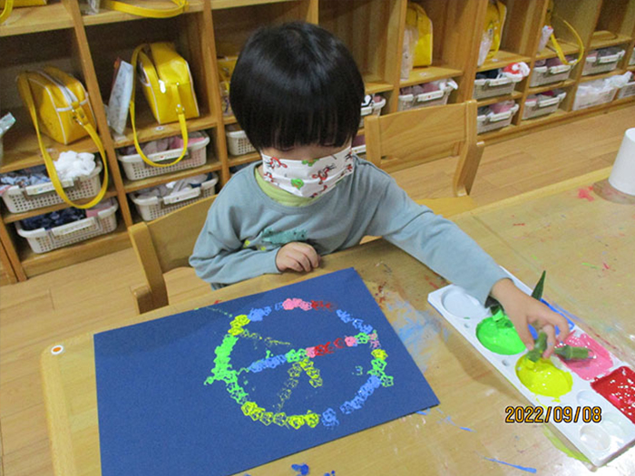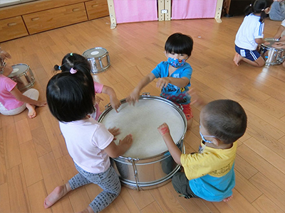 音感保育です。ピアノに合わせてみんなで叩いてみました。