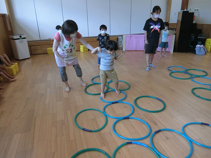 フープ3つのところはどうやっていくのかな?喜んで取り組んでいました。