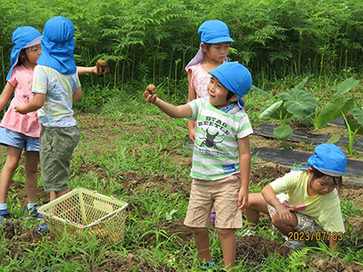 あさがお組さん(5歳児)が植えたじゃがいもを収穫しました。