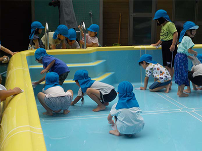 今年も4,5歳児がプールあそびをします。5歳児がはりきって、プールそうじをしてくれました。