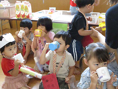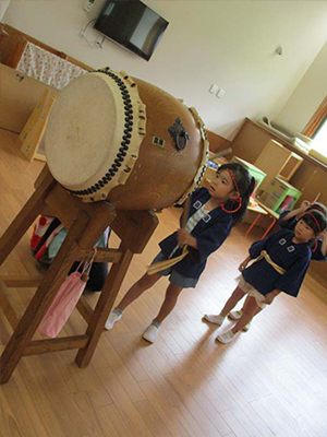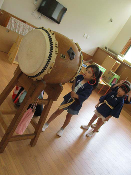 あさがお組さんが曲に合わせて元気いっぱい叩いてくれました。