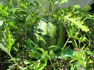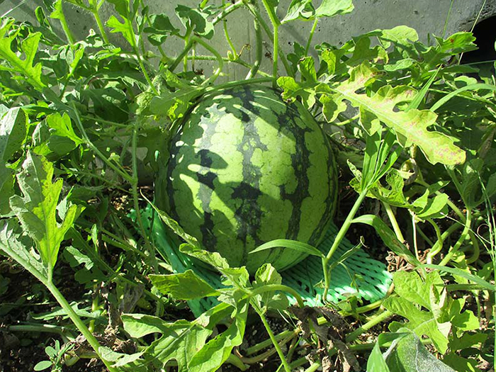 プールの周りにある花壇であさがお組(5歳児)がすいかを育てました。 大きなすいかができました!!