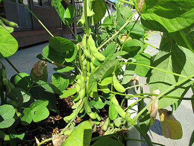 たんぽぽ組(4歳児)が枝豆を・・たくさん実って収穫し美味しくいただきました。