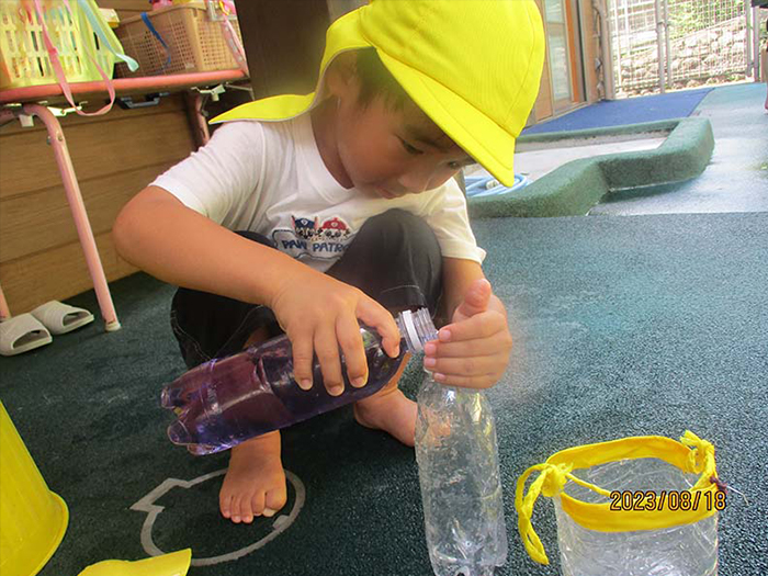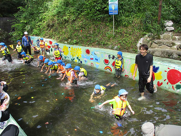 5歳児が黒沢川上流にあるひまわりプールにあそびにいきました。
