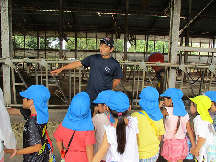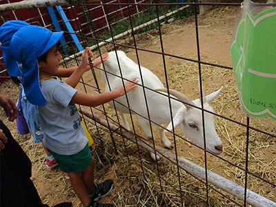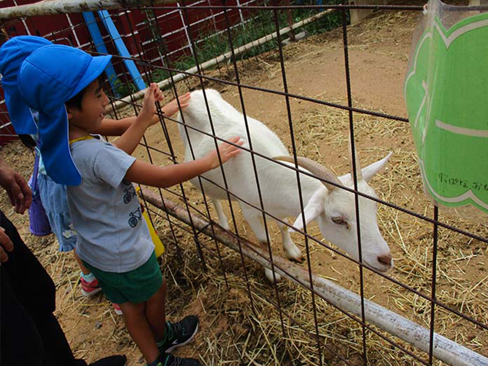 大きな牛を近くで見たり、牛の乳しぼりを見せてもらい、かわいいヤギさんを触らせてもらいました。