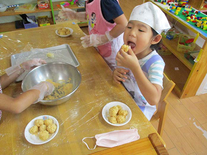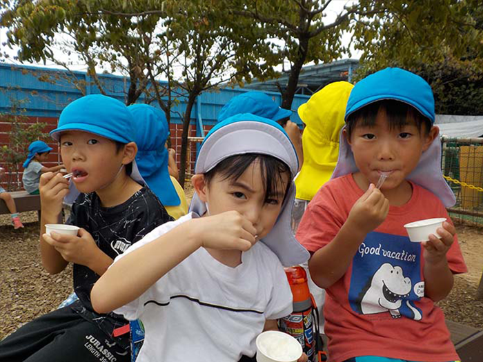 ミルク味のジェラートを食べました。あまくておいし~みんなニコニコでした。
