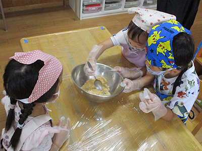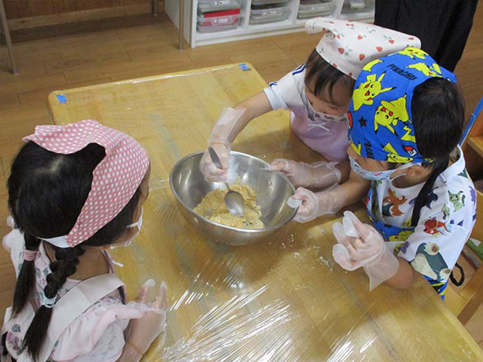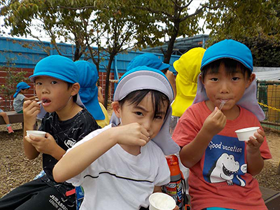 自分で作ったおはぎは格別の味・・おいし~と大満足なあさがお組さんでした。。
