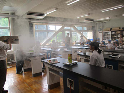 中学生との交流で第六中学校へ行きました。学校を案内してもらい理科の授業では空気砲を見せてもらいました。