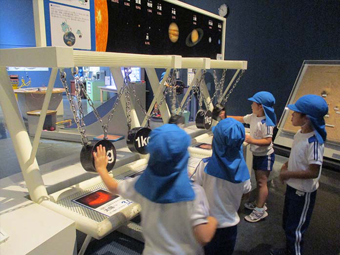 重力のお勉強?同じ1㎏でも惑星によって重さが違う事を体験できました。