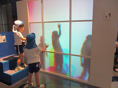 光の世界・・不思議な影におもしろいポーズをとって楽しんでいました。