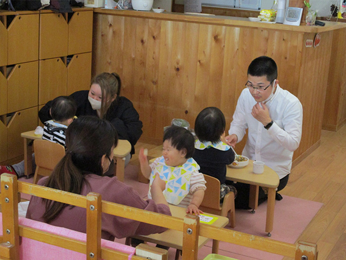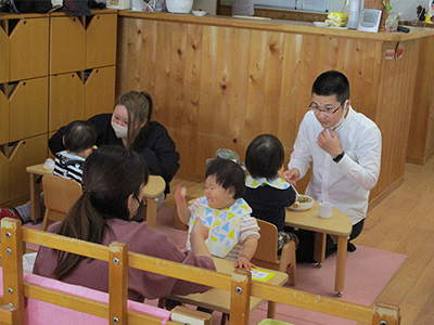 親子リズムが終わって、給食の時間もお家の方と一緒に過ごしました 。