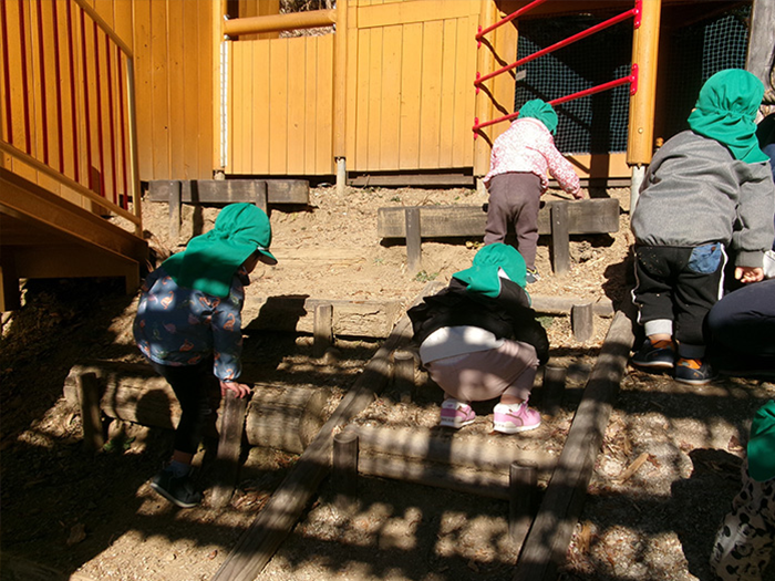 丸太の階段をゆっくりとのぼるかわいい~後ろ姿♡