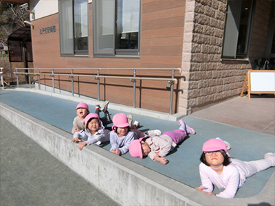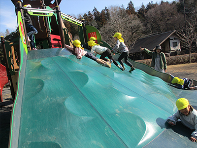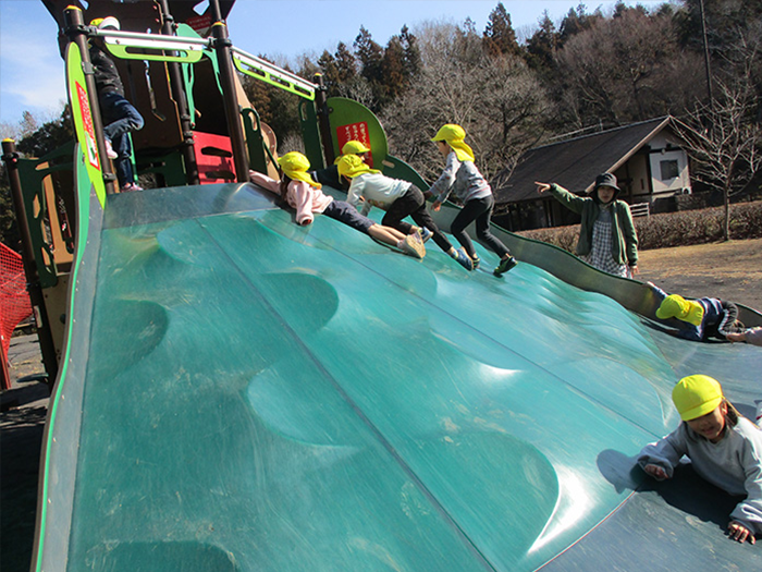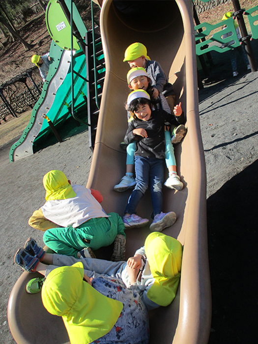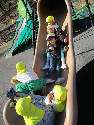 花木園の遊具で・・すべり台の山登り スルスルと滑りながら楽しんでいました