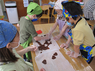 あさがお組(5歳児)生地を伸ばしてからの型抜き崩れないように慎重に・・・