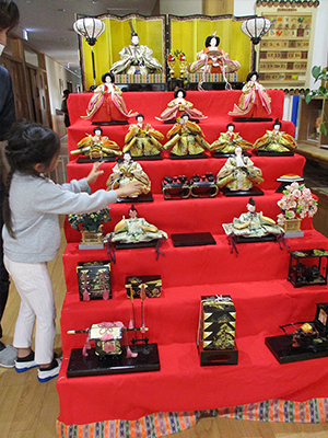 あさがお組(5歳児)が飾るお手伝いをしてくれました