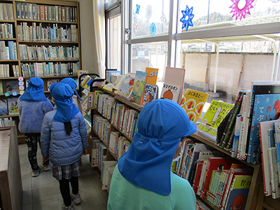 図書館ではたくさんの本に驚いていました!!好きな本を選で借りました