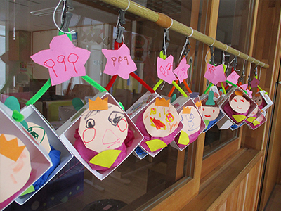 もも組(3歳児)のおひなさまの飾りです