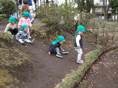 斜面を登ったり滑ったり、松ぼっくりを拾ったりと自然の中で楽しんで来ました