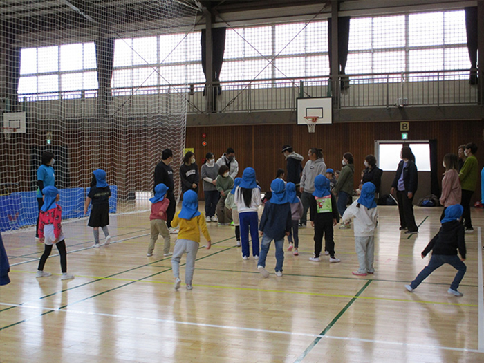 雨となってしまいましたが、小曾木市民センターの体育館で親子で体を動かしました