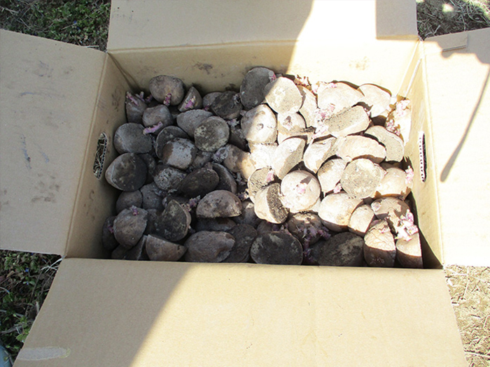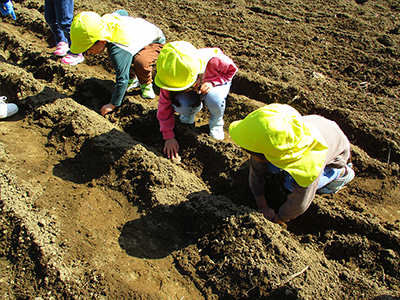 たんぽぽ組(4歳児)がじゃがいもの種を植えました