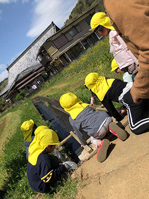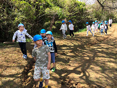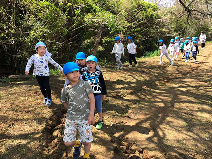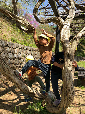 たんぽぽ組(4歳児)が花木園に遊びに行きました・・素敵なあそび場を見つけて楽しんでいました。