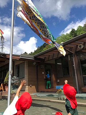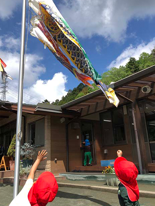 およいでる~ 今年も青空を気持ち良さそうに泳いでいるこいのぼりを嬉しそうに見ていました
