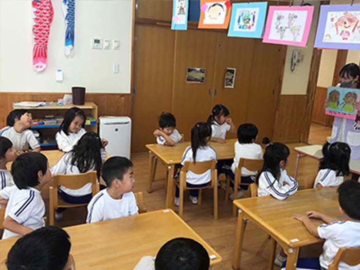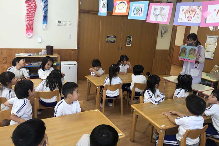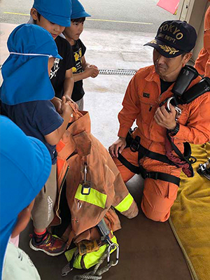 あさがお組(5歳児)が行きました。お話しを聞いたり、色々な体験をさせてもらいました