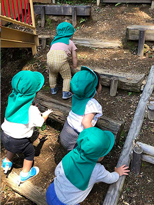 裏山のアスレチック 「よいしょ・・」と登るかわいい後ろ姿