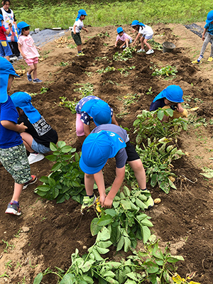 あさがお組(5歳児)が植えたじゃがいもを収穫しました