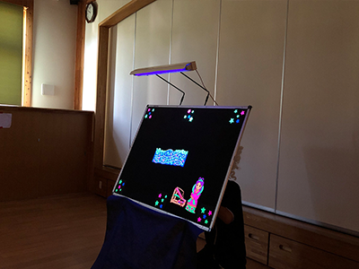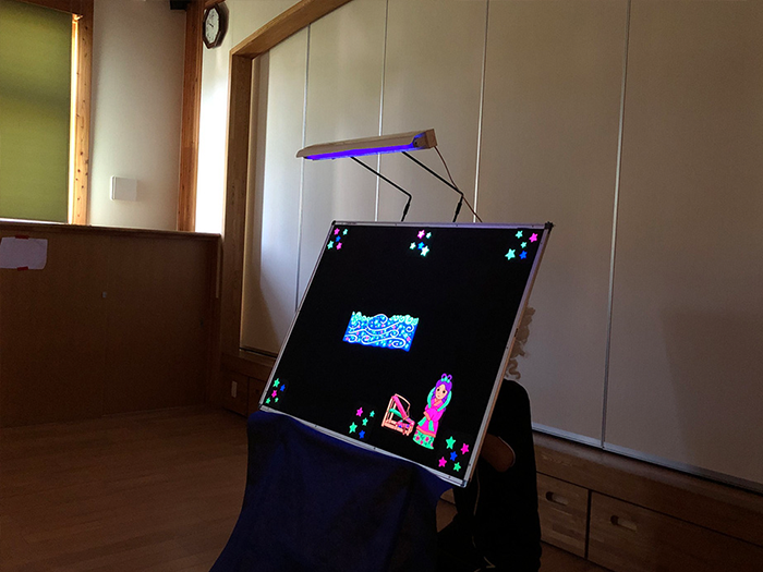 ホールでたなばたさまのお話しをブラックシアターで観ました