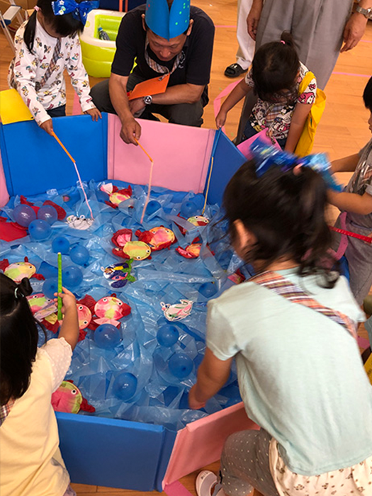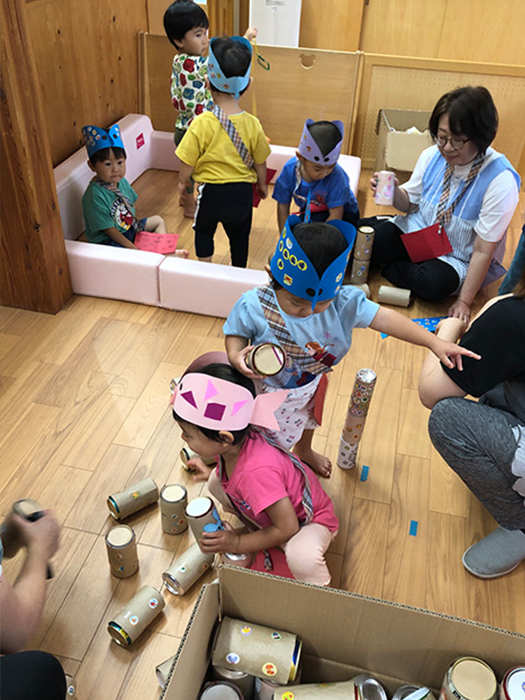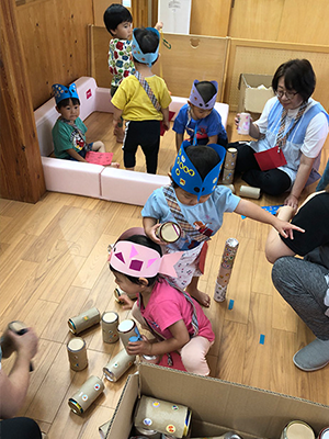 ゲームコーナーでは缶を積み上げたり転がしたり描いてある絵に興味を持った子もいました