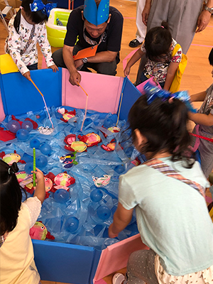 カラフルな色のかわいい金魚を吊り上げ大喜び!!