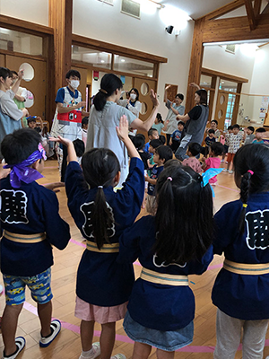 最後はみんなで盆踊り・・アンパンマン音頭、月夜のぽんちゃらりんを元気いっぱい踊りました