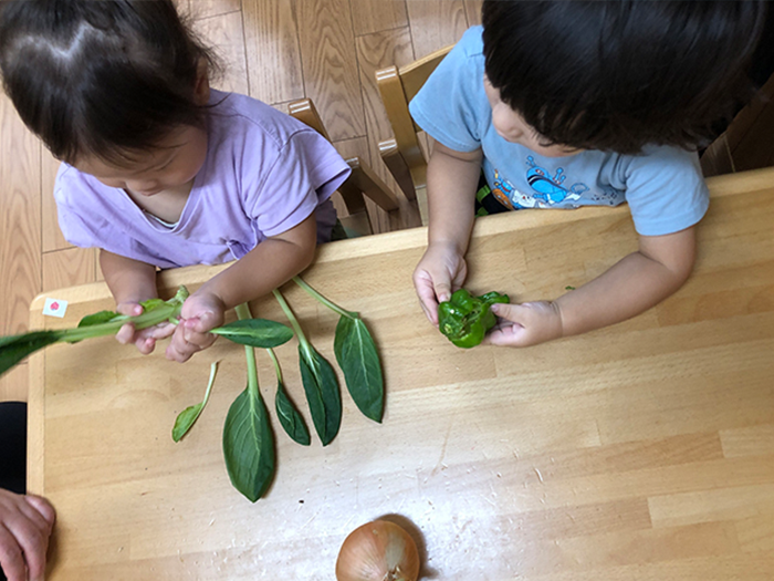小松菜をさいたり、ピーマンの種取りのお手伝いをしてくれました