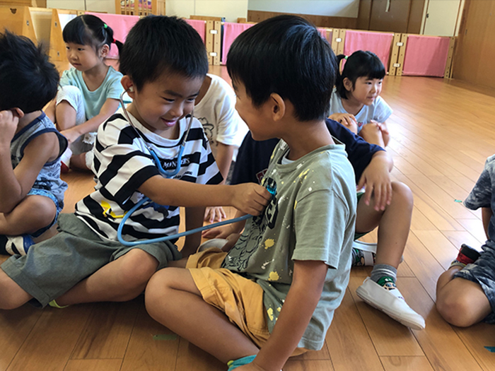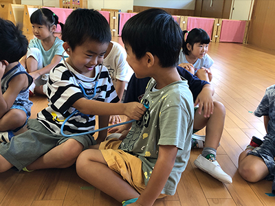 ドキドキ感じる心臓 聴診器でお友だちの心臓の音をききました